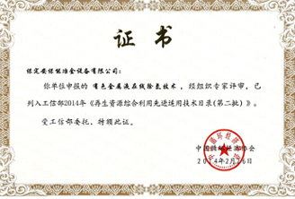 再生資源綜合利用先進(jìn)適用技術(shù)證書(shū)